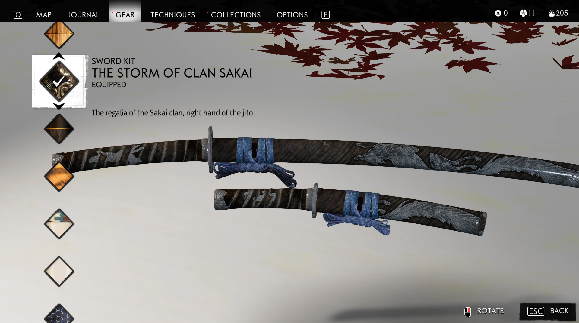 Sets of swords and blades Kokushibo Ronin AttireallWeapons and armor for Ghost of TsushimaGhost of Tsushima