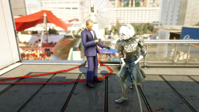 The wetsuit was replaced by 2B, and the masamun/katana was replaced by Virtus Pact.