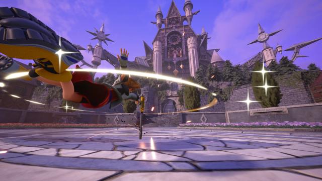Remember that scene in KH2 where Sora, like a cool one, cuts through a bunch of buildings? Yes. Now...000