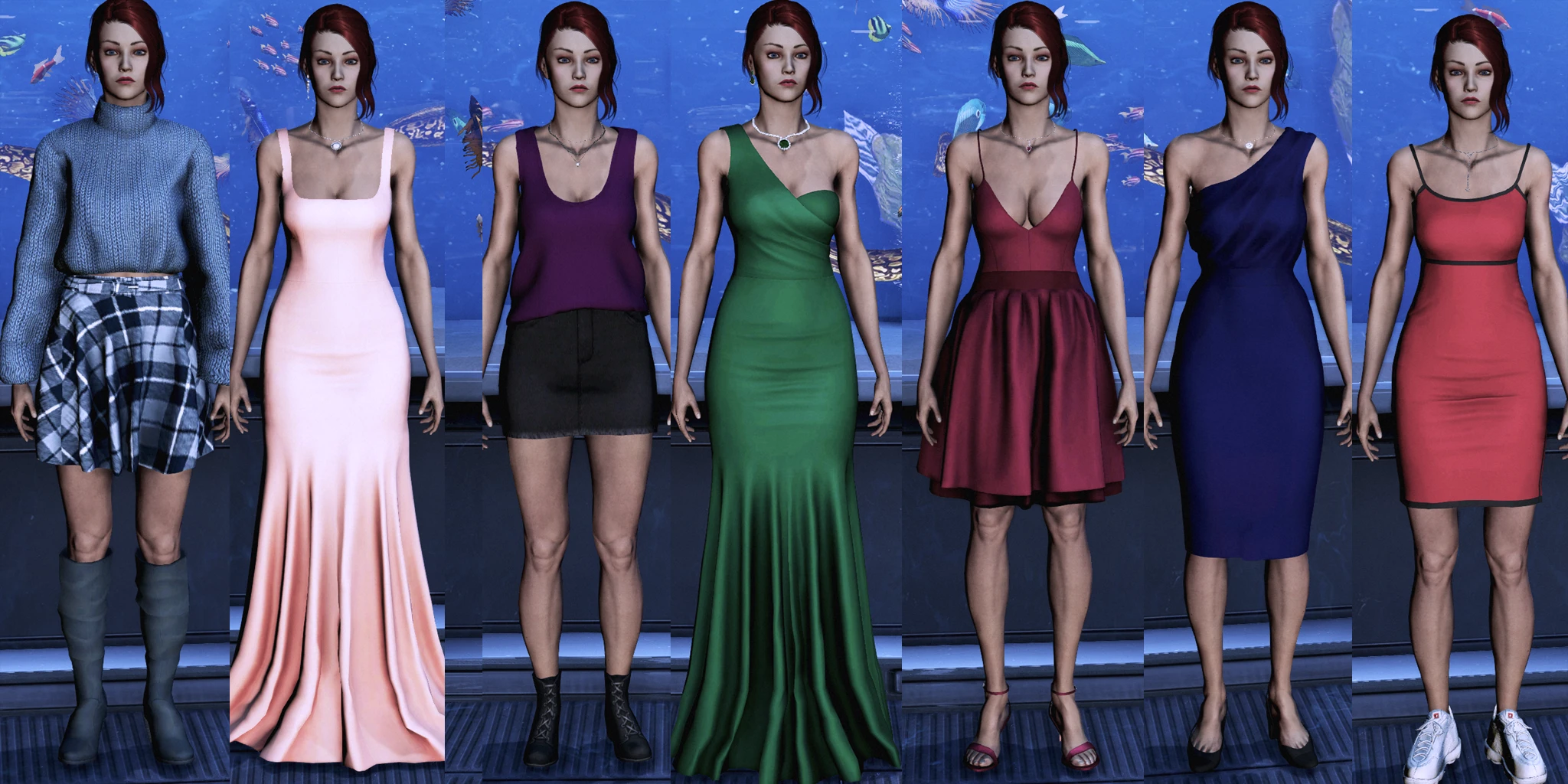 A number of new outfits, including dresses and other similar items, are introduced by The Sims CC creators as everyday outfits available for purchase at FemShip LE2.