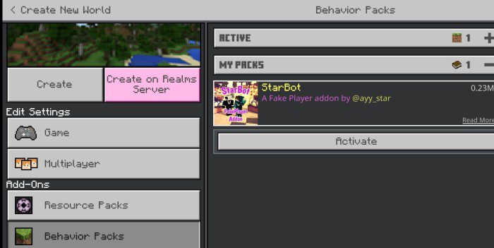 - To use these bot players, first import the provided ".mcaddon" file into Minecraft, it imports the behavior package and resource package into Minecraft.