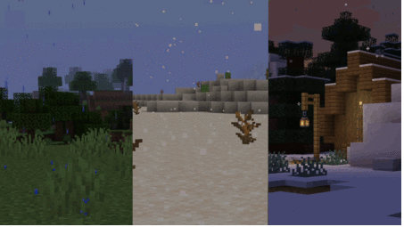 To spice up your gaming adventures, we recommend you pay attention to the Biome Particle Weather add-on for Minecraft. With this add-on, you will not only get good results, but also have the opportunity to significantly vary your weather.