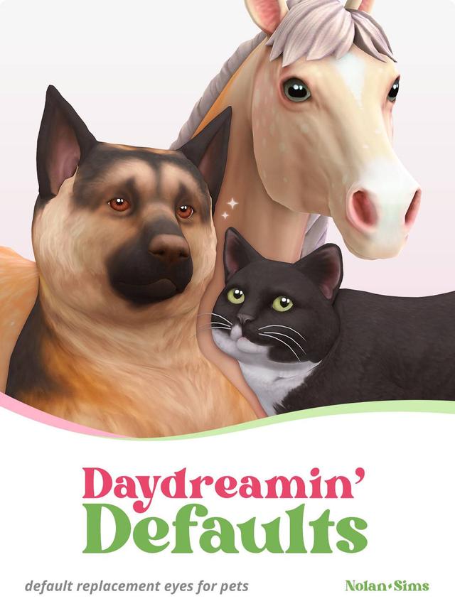 The eyes of Nolan-Sims DayDreamin Defaults automatically change the standard eye colors of your pet....1100