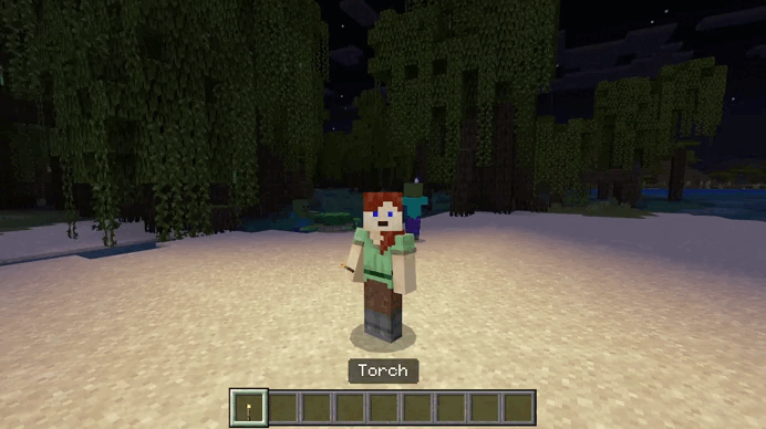 Dynamic Light Addon (1.21, 1.20) mejora la iluminación del juego, permitiendo que los objetos brillantes funcionen incluso cuando se sostienen en la mano. Además, las áreas submarinas ahora también se pueden iluminar con Sea Pickle.