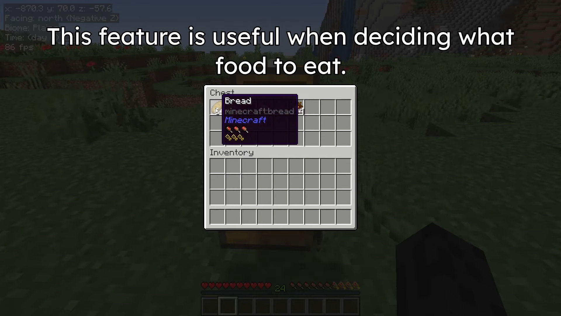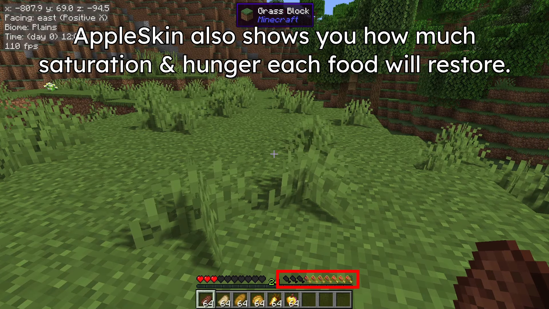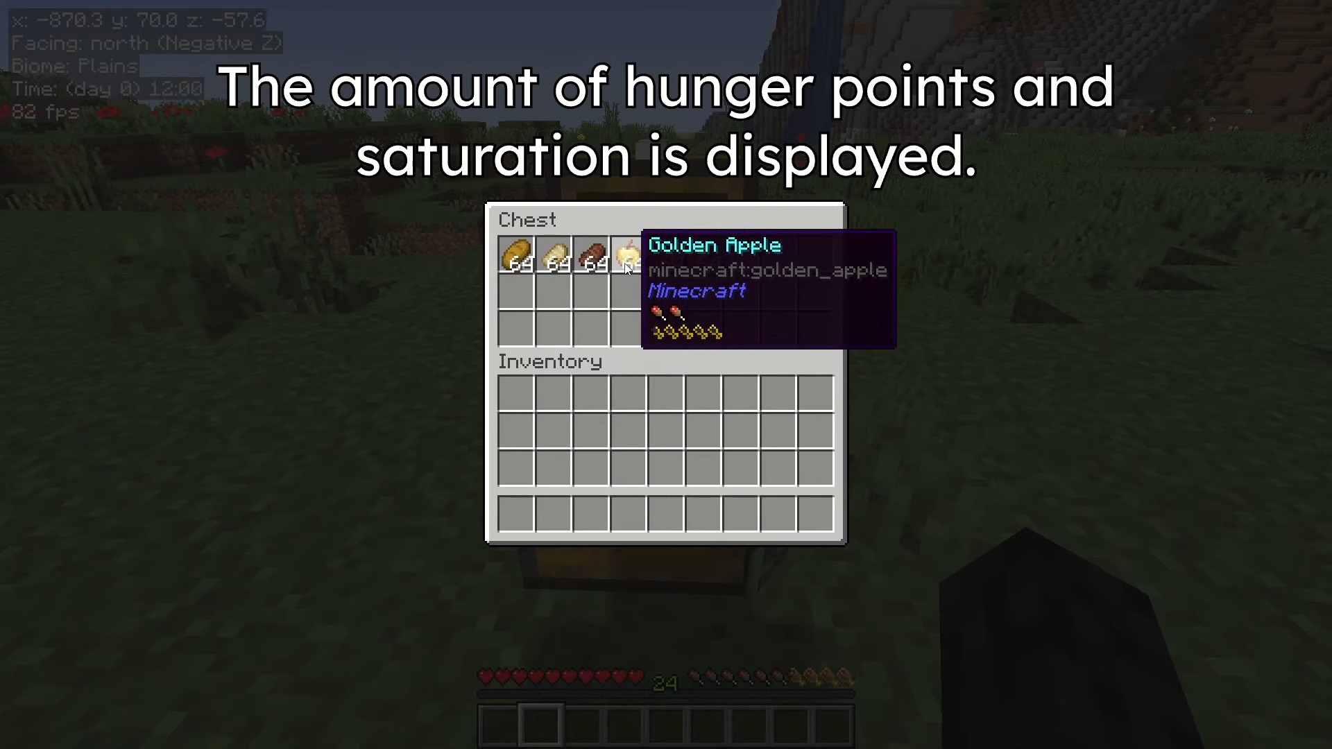 AppleSkin Addon (1.21, 1.20) - это форк мода AppleSkin для Java. Этот аддон имеет несколько полезных функций, таких как: