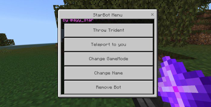 Star Bot Addon (1.21, 1.20) - это уникальный аддон MCPE/Bedrock, который позволяет вам призывать игроков-ботов в вашем мире. Эти боты могут быть использованы для бездействия на ваших фермах или для загрузки территории, пока вы выполняете другую работу.