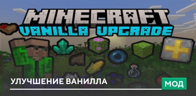 Очень крутое дополнение для тех, кто хочет расширить мир MCPE во всех направлениях, - модуль Vanilla Upgrade Module, который добавляет новые типы миньонов, кубов, биомов, растений и многое другое. При этом стиль игры остался прежним, но почти все элементы были обновлены. Вас ждет совершенно новый мир, который вам предстоит исследовать.